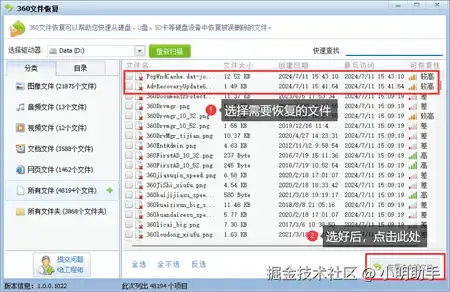 使用360文件恢复工具的教程如下: