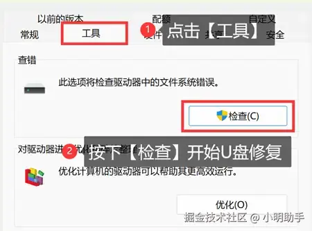 U盘数据恢复方法二:使用磁盘检查,尝试修复文件系统