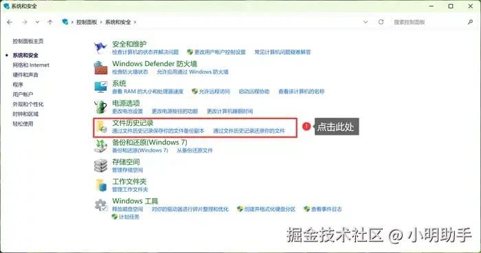 使用文件历史记录的步骤: 在系统搜索栏中输入【控制面板】并打开它。然后选择【文件历史记录】。在里面再点击【还原个人文件】。选择你需要恢复的文件后,点击【还原】按钮。