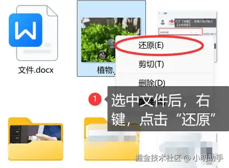 照片数据恢复妙招一:通过回收站查找到误删照片然后操作还原