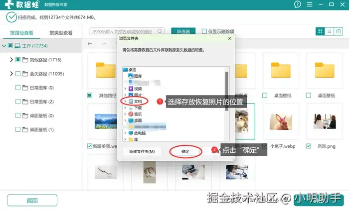 步骤3: 点击完“导出”,最后再为恢复的照片选好存放的位置。
