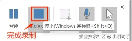 第三步:点击【停止】按钮或者按【Windows徽标键+Shift+Q】组合键完成录制。
