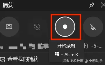 第二步:在Xbox Game Bar中,点击左上角红色的【开始录制】按钮或者按【Windows徽标键+Alt+R】组合键即可开始录制。