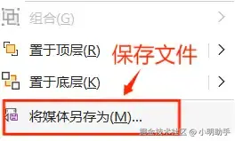第四步:用鼠标右键单击Power Point软件界面中的录屏文件,选择【将媒体另存为】选项,将录屏文件保存到电脑上。