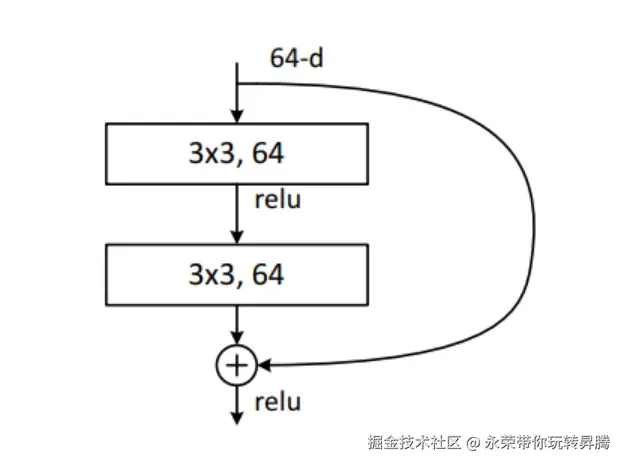 BasicBlock模块介绍:该基础模块主要用于50层数以下的resnet网络之中,具体网络结构如下图所示: