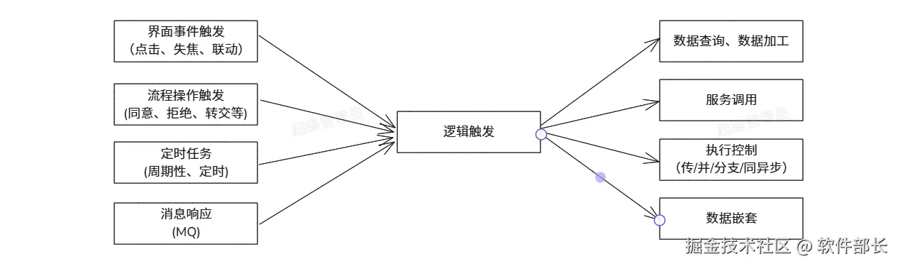 逻辑引擎作为JVS低代码开发套件的核心组件,专注于业务逻辑的快速构建与实现,它扮演着程序配置与执行的核心角色,适用于多样化的应用场景。该逻辑引擎设计灵活,能够通过多种配置方式被触发,以精准响应各类业务需求并实现相应功能。