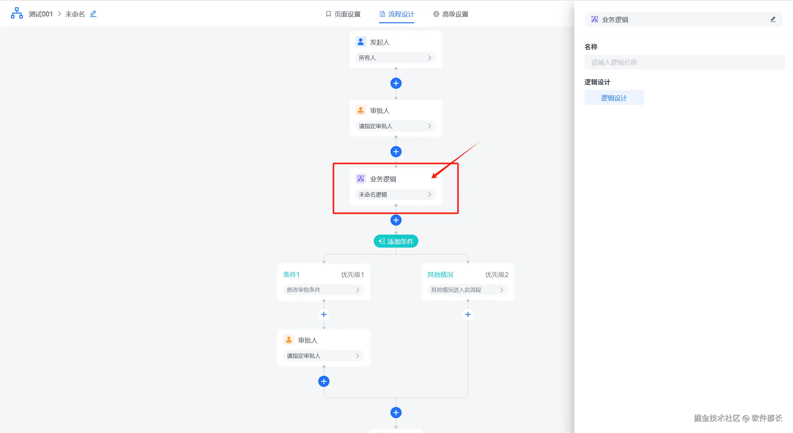 ④:点击“设置”可以进入到这个逻辑的 具体设计器之中(所见即所得)