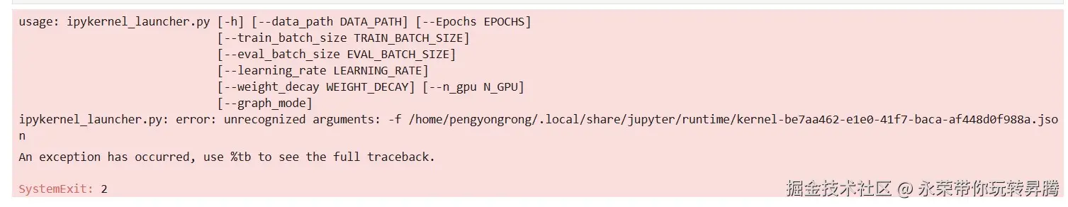 IDE当中代码使用了parser.parse_args(),当在jupyter下调用时出错,这是因为调用parser.parse_args()会读取系统参数:sys.argv[ ],命令行调用时是正确参数,而在jupyter notebook中调用时,sys.argv的值为ipykrnel_launcher.py。