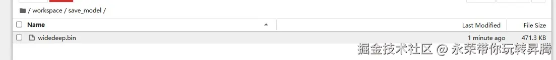 构造WideDeep模型,并调用'train_model()'函数开始训练,训练完成后会调用'evaluate_model()'对模型效果进行评估。从打印10轮次迭代日志可以看出loss在逐渐下降,准确率在逐步提升,说明模型训练在逐渐收敛,训练完成后将迭代中具有最好表现的权重信息保存在save_model下的widedeep.bin,后续可以作为checkpoint文件进行预训练或者是断点续训。