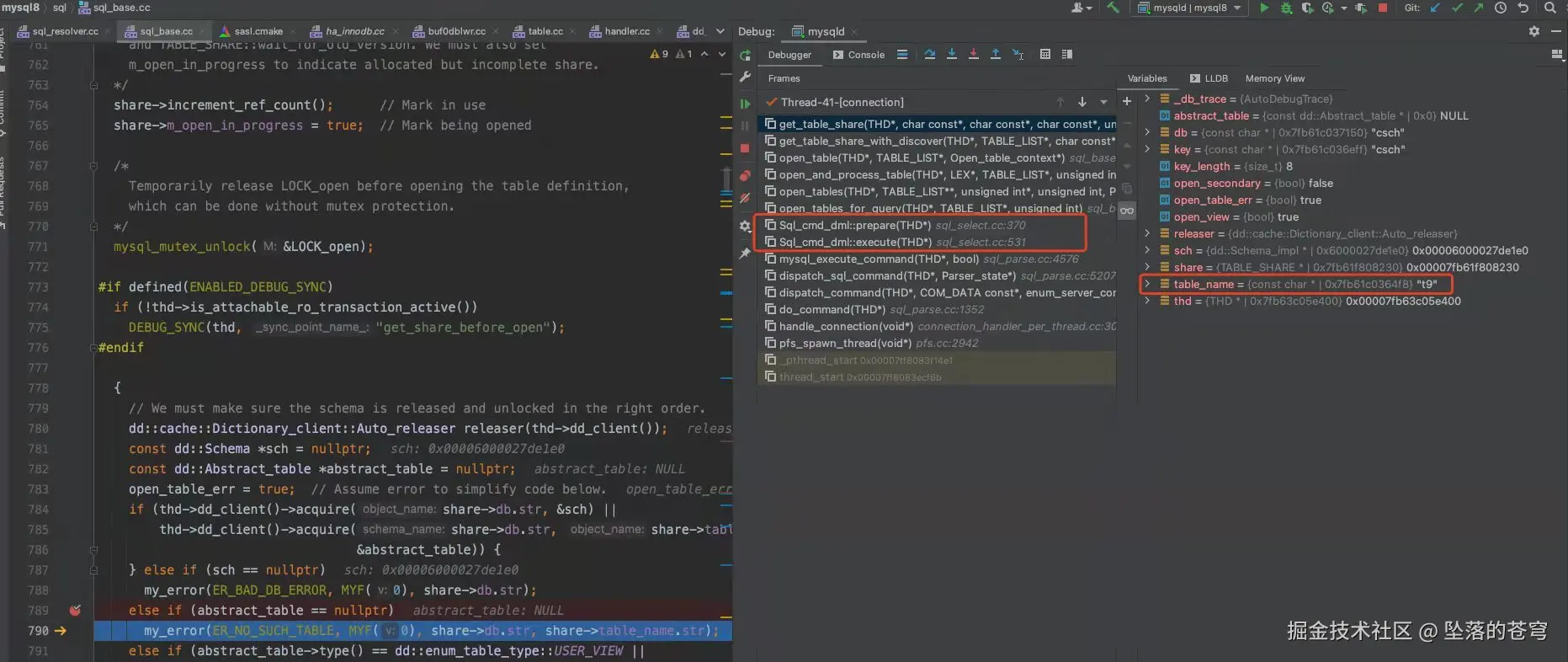 上面的中间部分是 MySQL 报错表不存在时的函数调用栈,可以看到表不存在的错误是在get_table_share() 函数里报错的,而这个函数是在 prepare 阶段调用的。