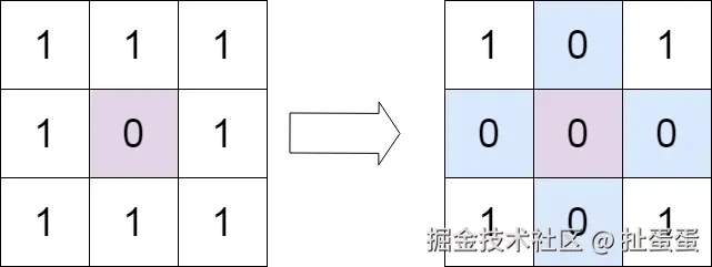 输出: [[1,0,1],[0,0,0],[1,0,1]]
