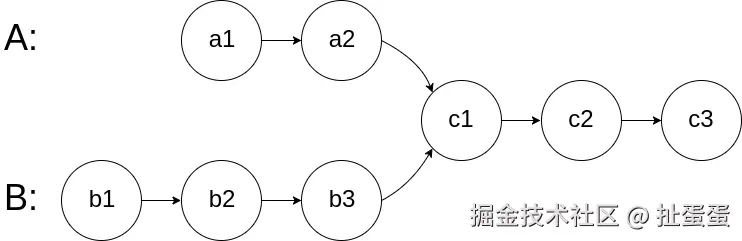 图示两个链表在节点 c1 开始相交 :