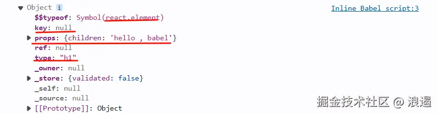 然而,浏览器并不能直接理解 JSX 语法,我们使用 bable其转换为原生的 JavaScript 代码才能执行。实际上,上面的 JSX 代码会被转换为类似下面的 JavaScript 代码: