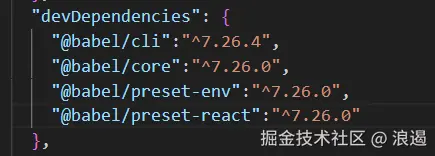 在 package.json 文件中添加 Babel 相关的开发时依赖。