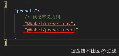 @babel/preset-env, 用于将新版本的 JavaScript 代码转换为旧版本的 JavaScript 代码,以便在不同的环境中运行@babel/preset-react,用于处理 React 项目中的 JavaScript 代码。