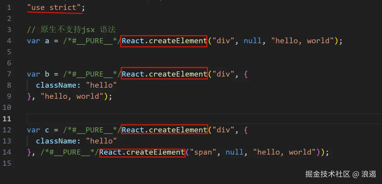// 原生不支持jsx 语法
