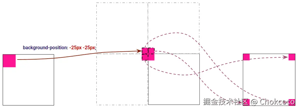 接下来,我们再给上述图形,增加一个 background-position: -25px, -25px: