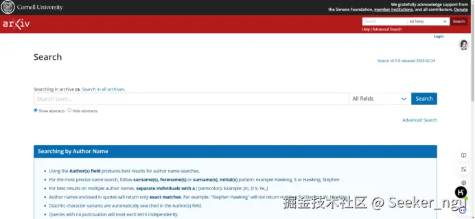 选择CS方向,或者直接在搜索框中搜索需要的论文类型,方向等。