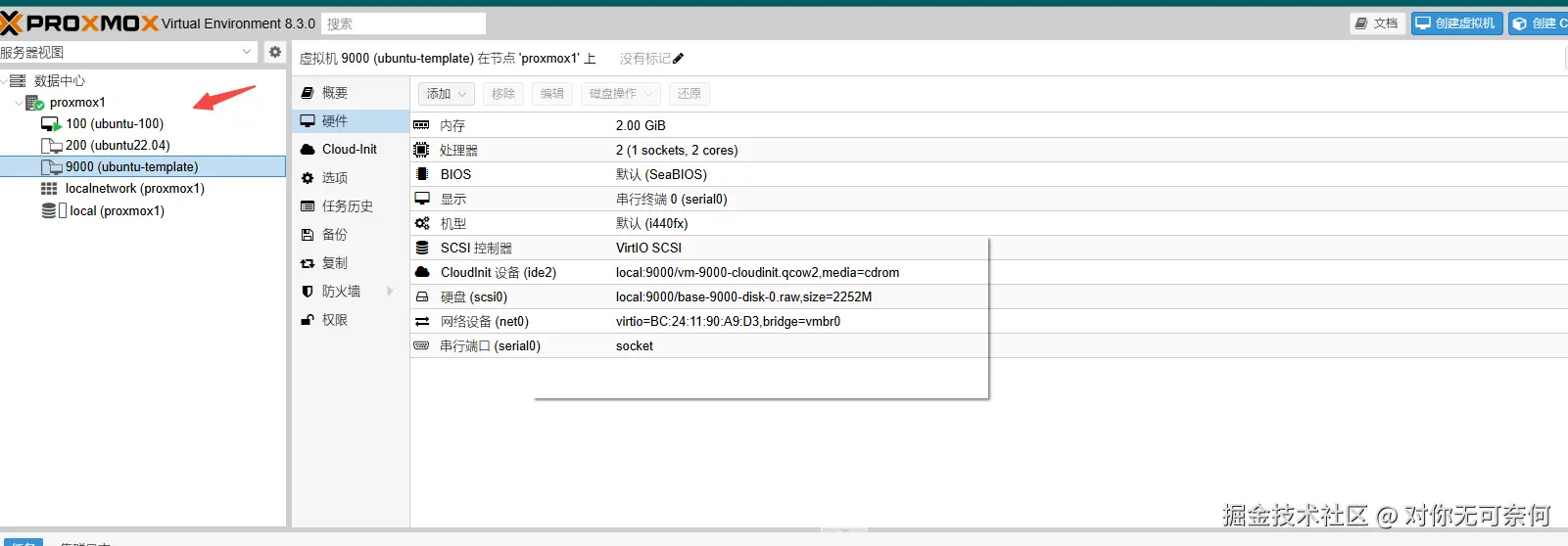 使用模板克隆一个新的虚拟机。假设我们创建一个ID为100的虚拟机。