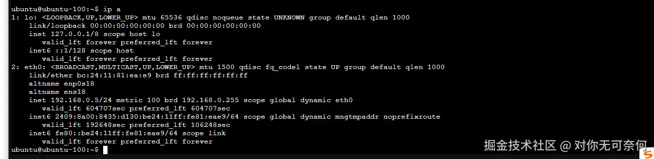 输入ip a 获取VM 100实例的ip地址: