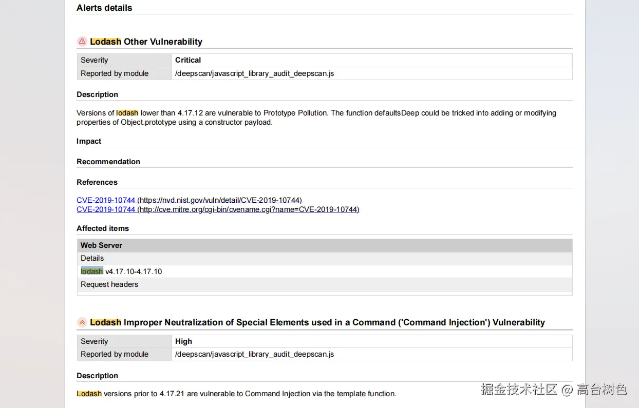 漏洞扫描nuxt工程lodash版本低于4.17.12