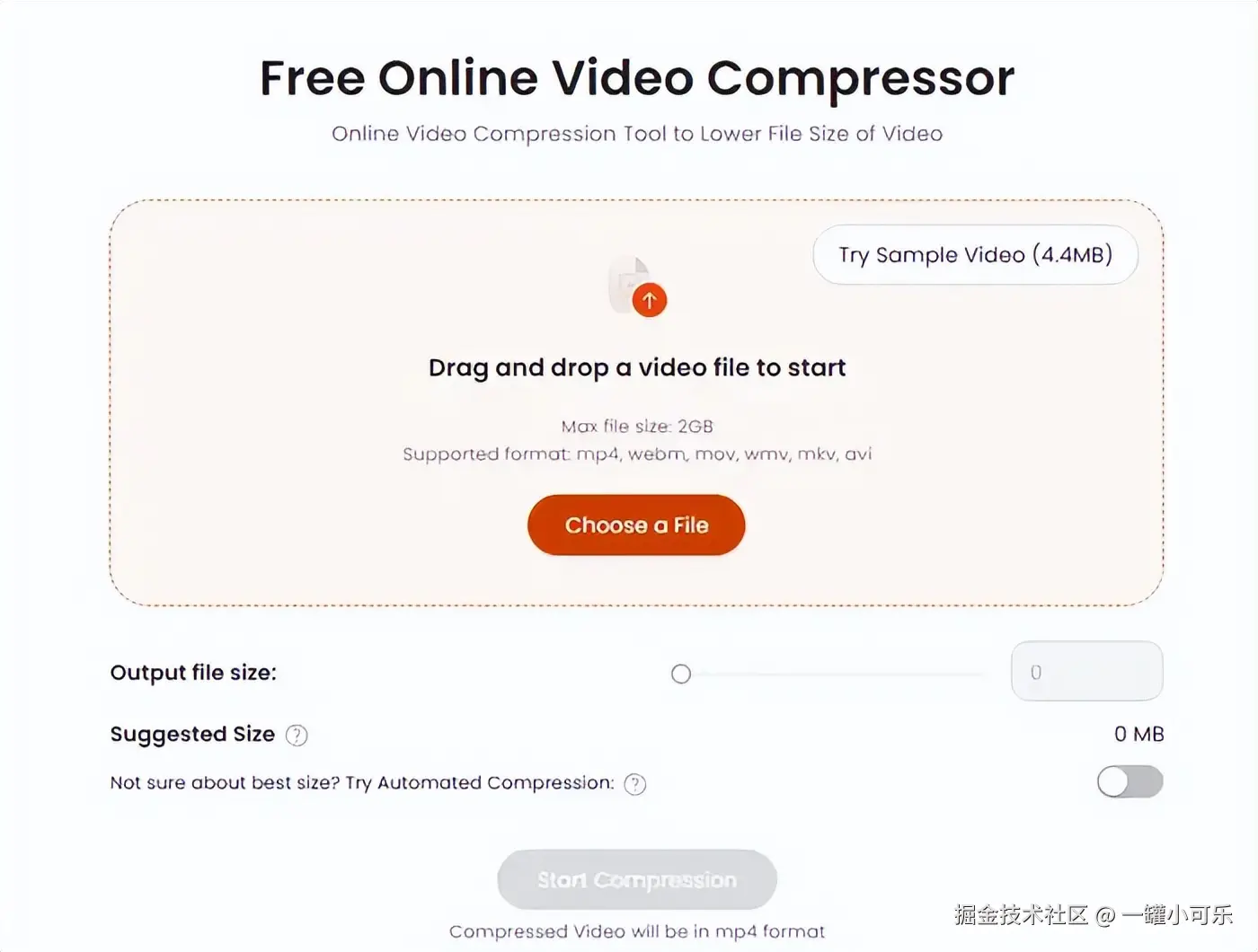 MP4视频太大怎么压缩?Video Candy是在线视频压缩网站,其特点是操作简单快捷。大家将视频文件拖入该网站页面,即可自动完成压缩。这种傻瓜式的操作方式非常适合不熟悉复杂软件的用户。然而,Video Candy不支持自定义压缩参数,压缩效果难以控制。