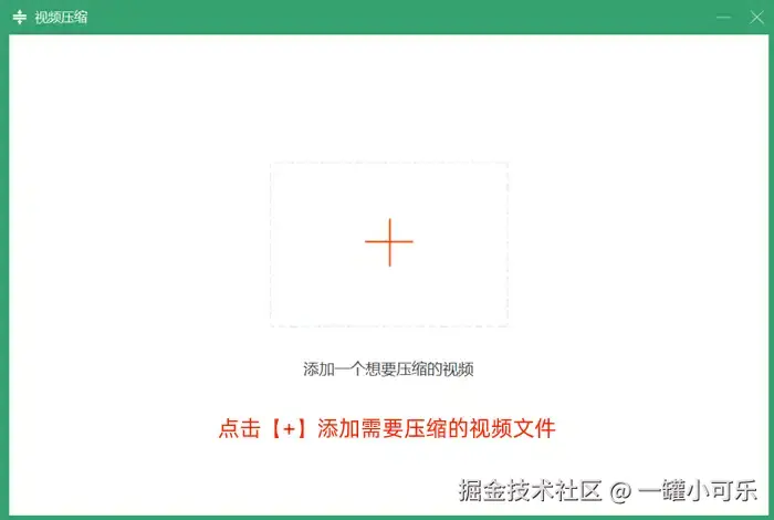 步骤2:点击【视频压缩】功能后,在其弹出来的界面中,点击【+】添加需要压缩的视频文件。