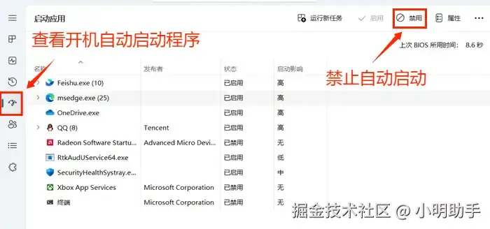 有时候,电脑卡顿是因为设置的开机自动启动程序过多,这种情况造成的电脑卡顿如何解决呢?我们可以试着清理一些不必要的开机自动启动项目,以下是操作步骤: