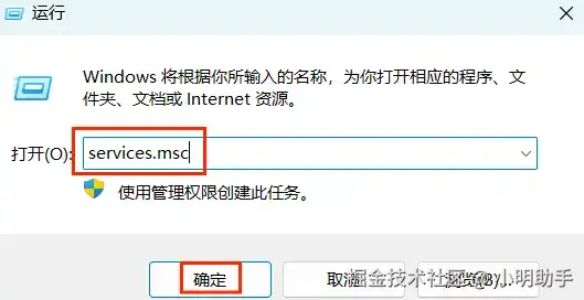 第一步:按下快捷键【Windows徽标键+R】打开运行窗口,输入【services.msc】并点击【确定】或按下回车。