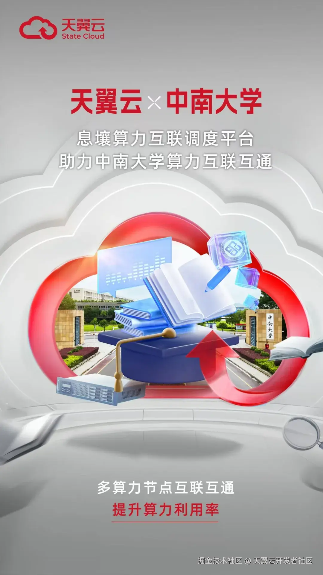 中南大学的算力调度管控平台不仅可以将计算任务和数据调度到最优节点,进一步降低全校算力使用成本;同时,通过接入天翼云丰富的智算资源,平台能够有效支撑中南大学的教学辅助、实验研究和模型训练等AI应用场景,助力学校科研工作。