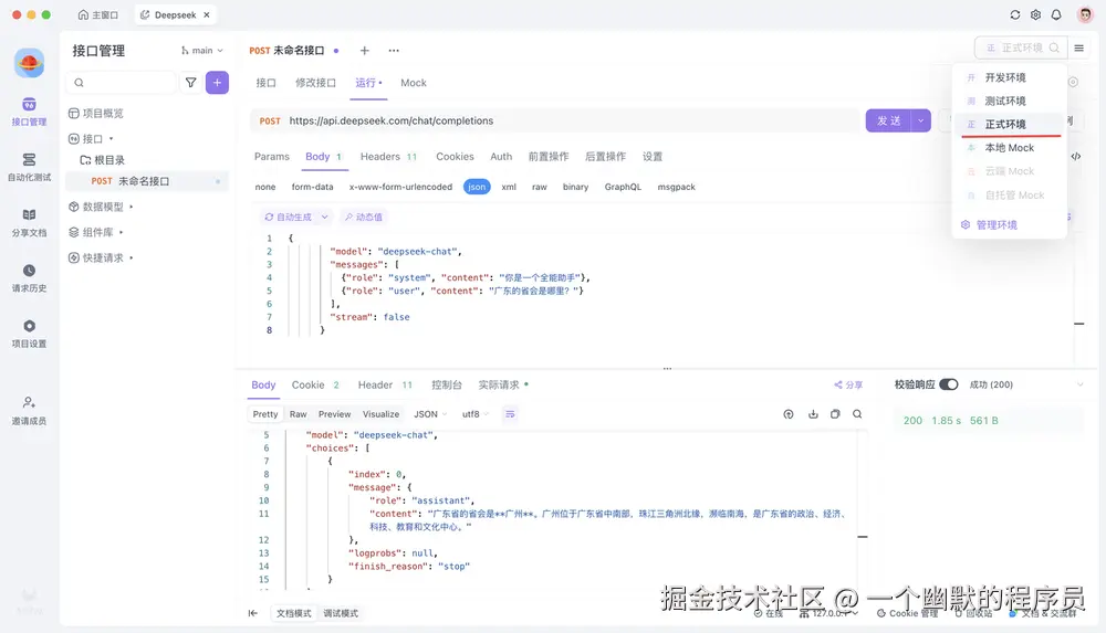 借助 Apifox 等工具,调用 Deepseek API 并将其集成到你的应用程序中从未如此简单,即使对于那些没有编码技能的人来说也是如此。