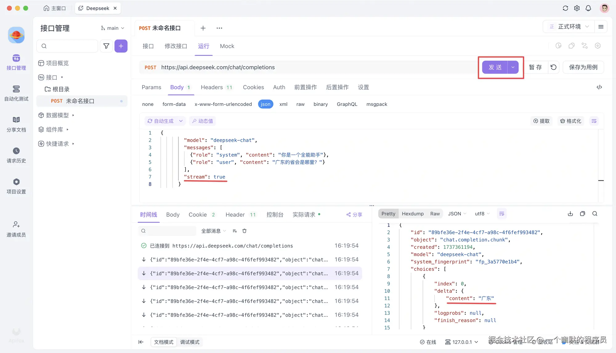 - 修改 Body 中的 messages 里的信息,你就可以实现不同的对话。