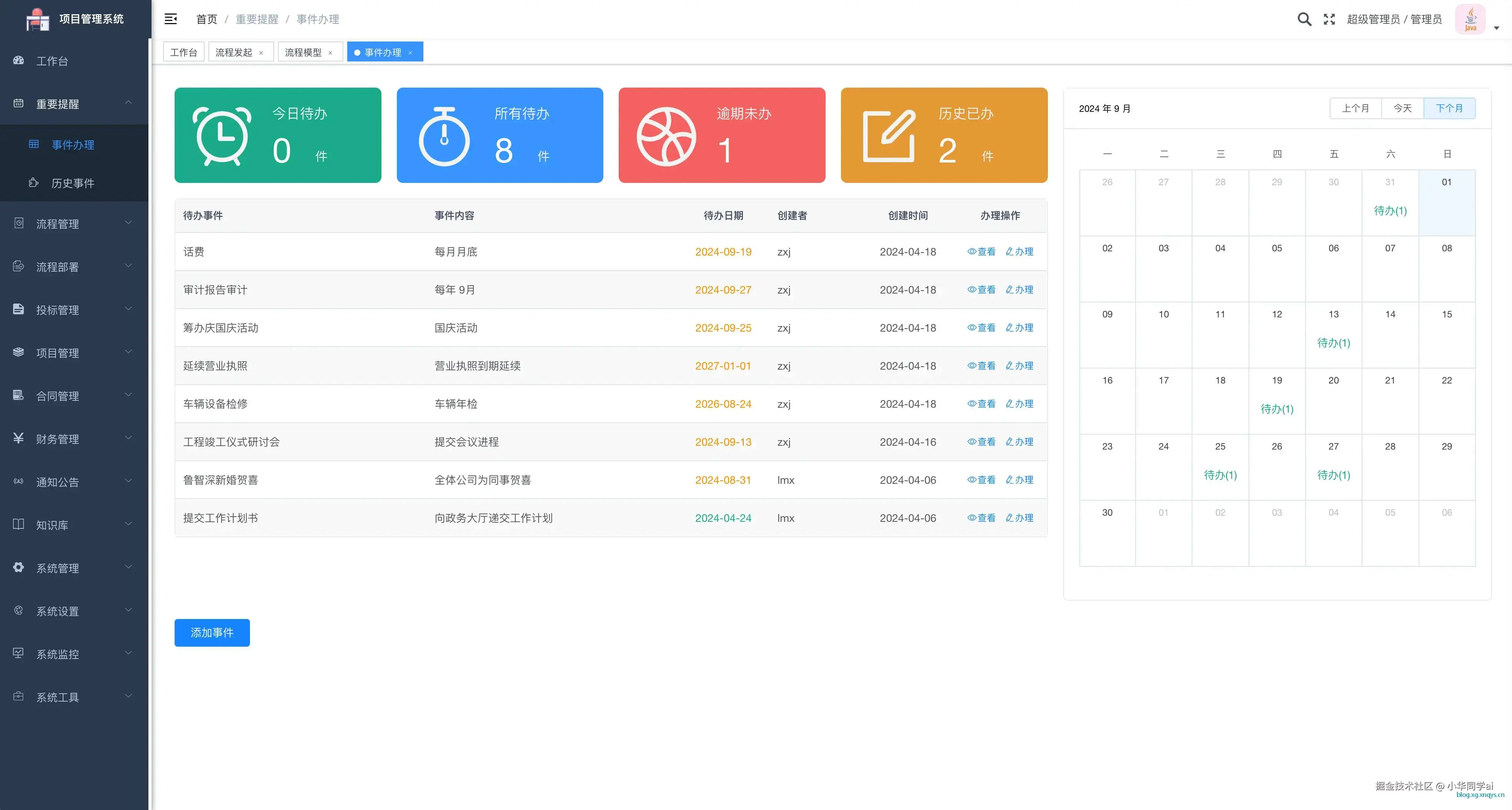 在数字化转型浪潮中,工程项目管理系统的效率直接影响企业的成本和竞争力。然而,传统系统往往存在功能单一、流程僵化、二次开发成本高等问题。今天,我们揭秘一款基于若依(RuoYi)框架与Flowable工作流引擎深度整合的国产开源系统——ry-vue-flowable-xg,它不仅免费开源,还支持高度定制化,覆盖投标管理、进度控制、财务核算等全流程需求,堪称工程行业的“效率加速器”!