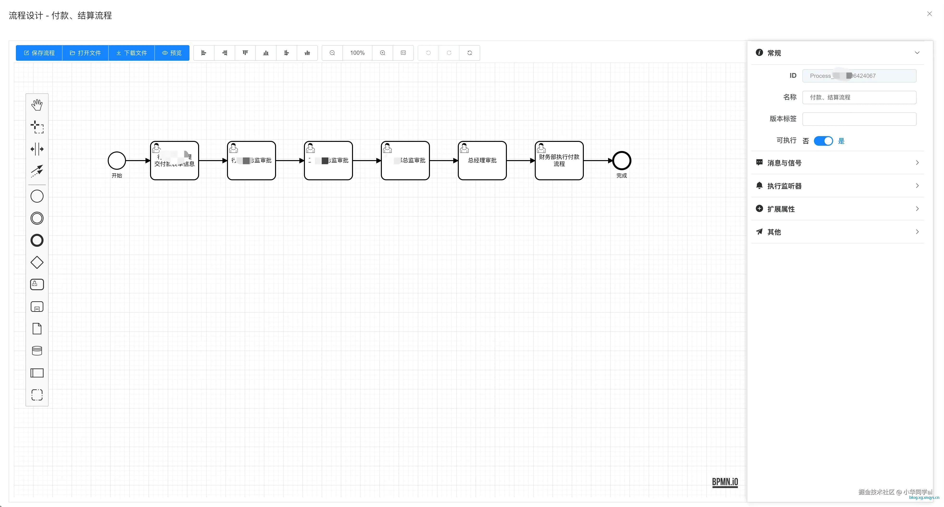 - Activiti:一款老牌的流程引擎,功能强大,但上手难度较高。