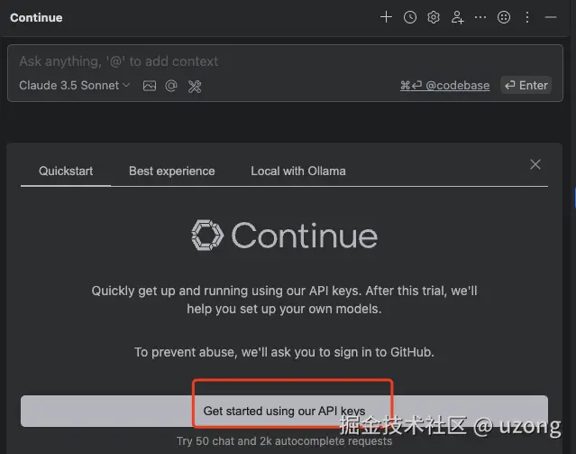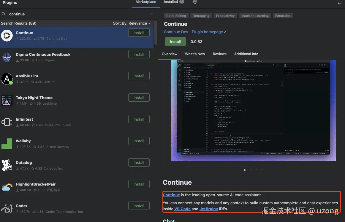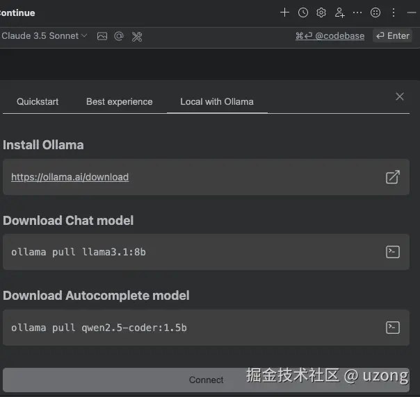 安装 Continue 插件,然后使用本地模型