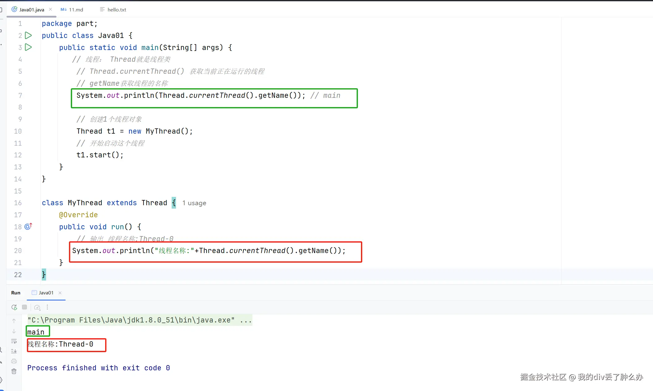 // 输出 线程名称:Thread-0