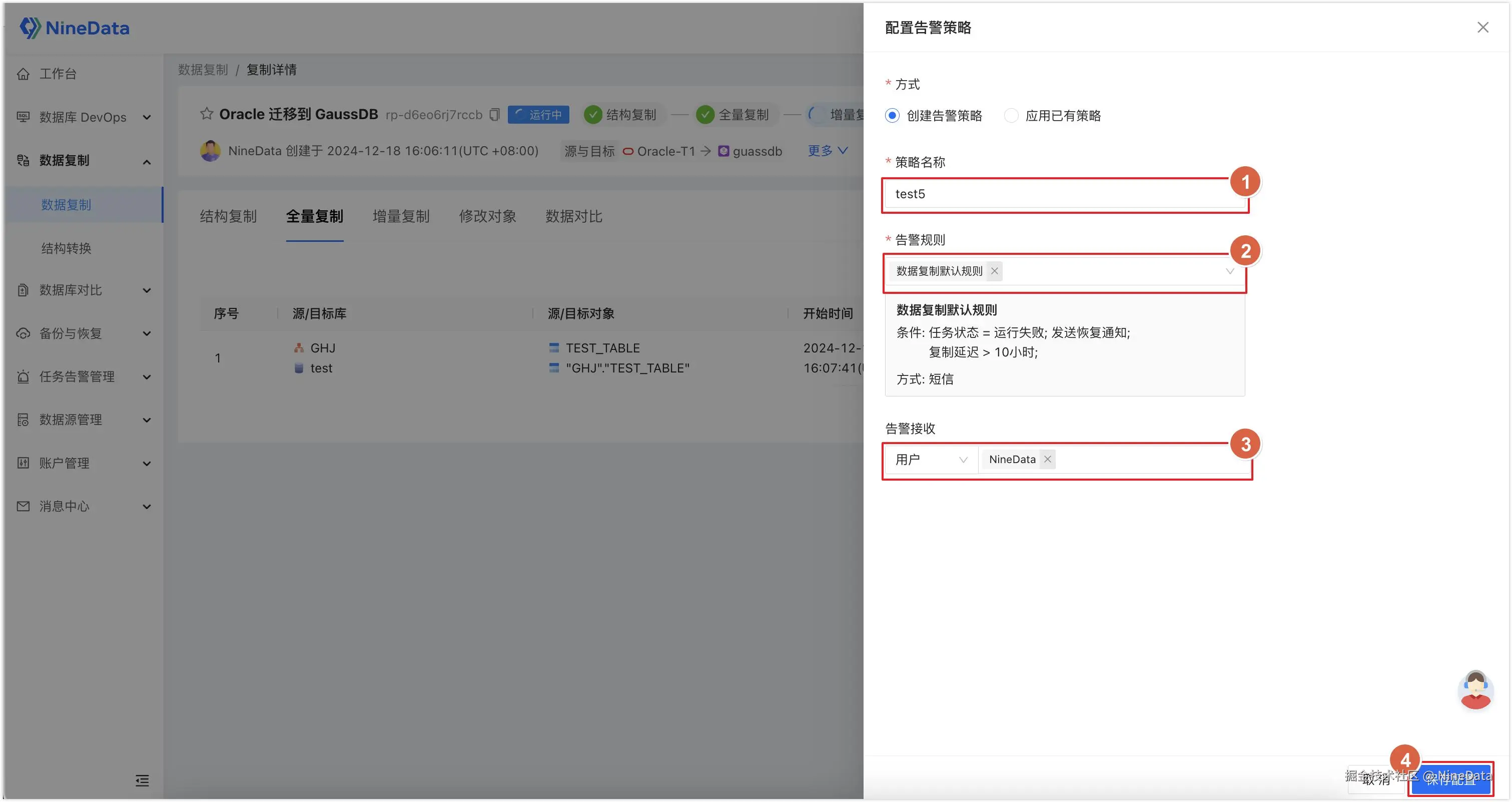 - 高效的 CDC 能力:NineData 能实时捕获数据库的变更数据(CDC),将其转换为 GaussDB 格式并实时加载到数据库中,支持毫秒级延迟,满足实时性要求。