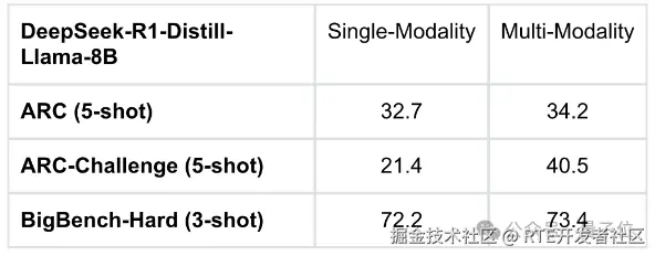 尤为显著的是,在 ARC-Challenge(5-shot)上,成绩从单模态的 21.4 提升到了多模态的 40.5。