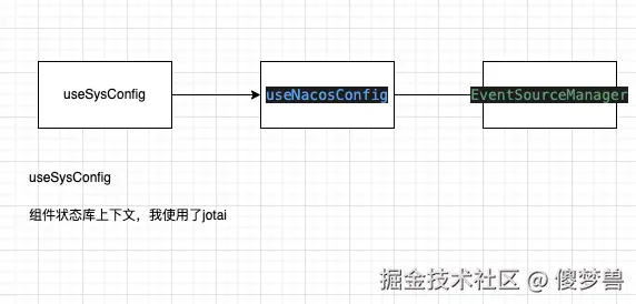 为了确保页面中使用到的配置能统一管理及更新,我们借助了一个名为 useSysConfig 的 hooks,它在页面多个位置被调用时,只会使用一个全局唯一的 SSE 连接。为此,我们提供了一个 EventSourceManager 来实现该功能,保证每个页面仅实例化一次 SSE 连接,减轻服务器压力。