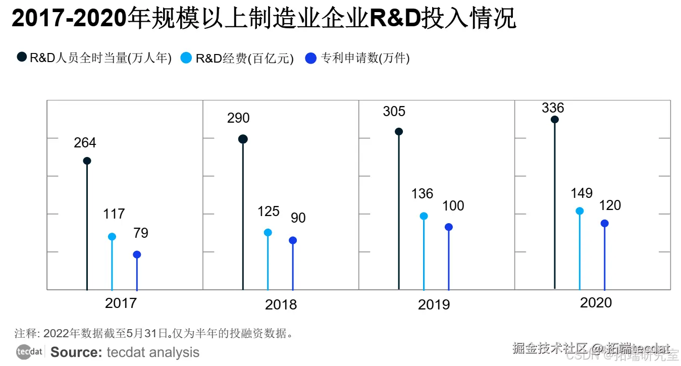 尽管面临挑战,制造业在智能化转型上仍有积极期望。政策的正向引导、研发投入与资本投入的增加,共同推动着制造业升级与创新,以实现优存量扩增量的目标。近年来,全国规模以上制造业企业在 R & D 经费支出与人员投入上逐年增长,对研发投入重视度不断提高,也促使制造业专利申请数持续增加。未来,需针对各环节挑战精准施策,才能更好地推动制造业与人工智能深度融合,实现高质量发展。