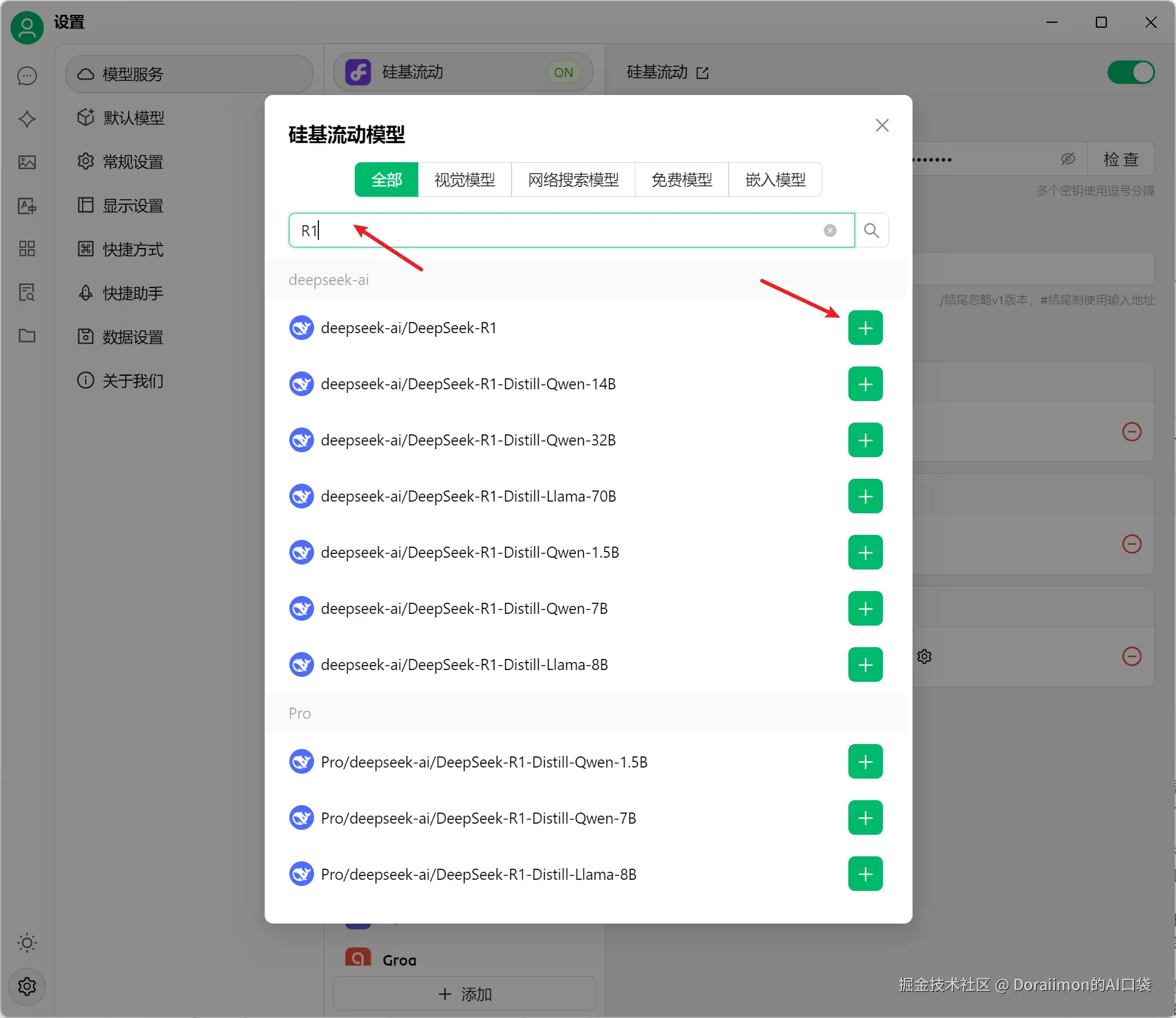 - 此时默认模型列表中并没有最强的DeepSeek R1,我们可以在模型管理中,额外添加R1模型