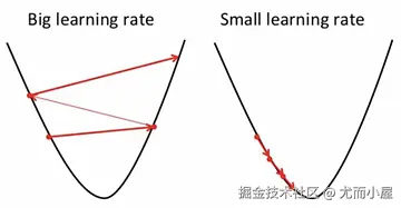 - 如果学习率过小,会使收敛速度过慢,增加训练时间。