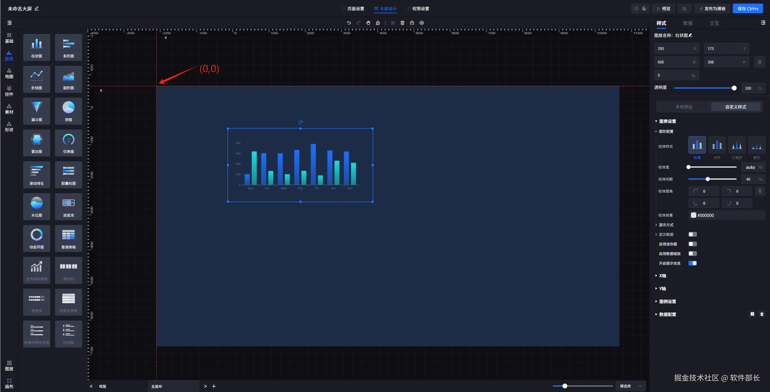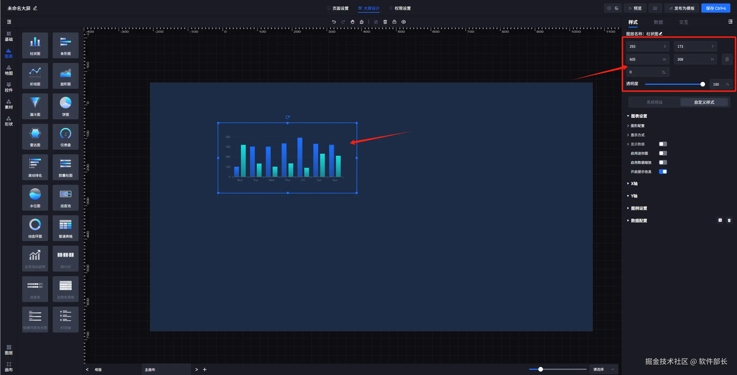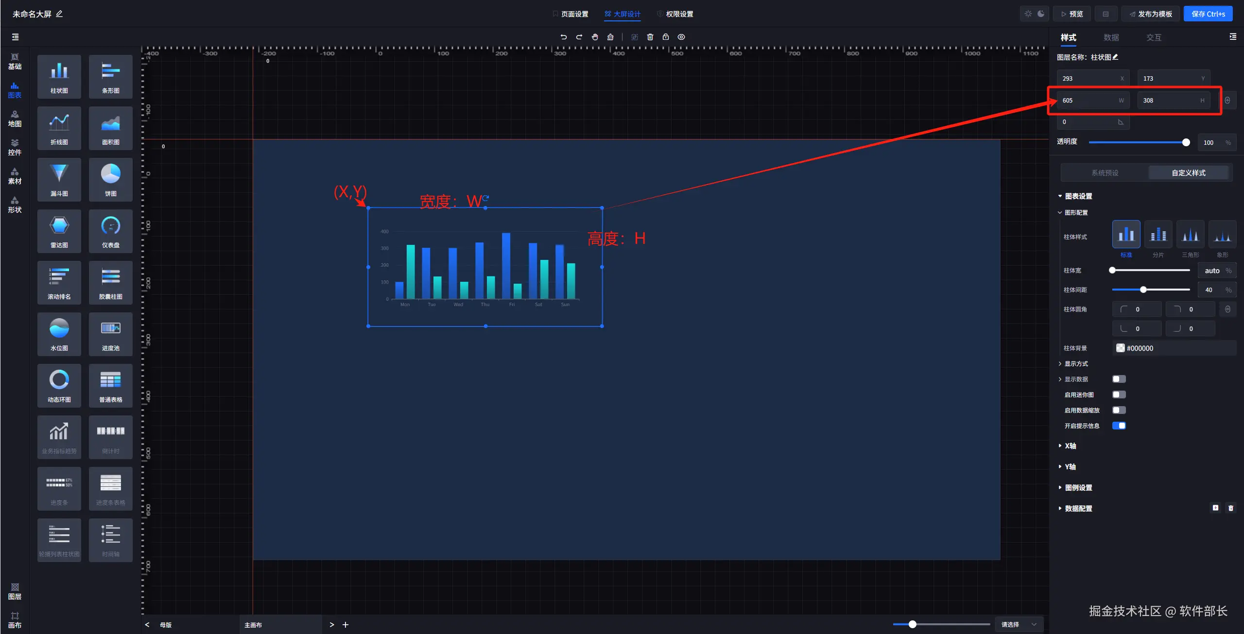 除了通过手动拖拽控制组件大小,也可以通过精确控制组件大小,通过(x,y,w,h)四个参数进行位置与大小的控制