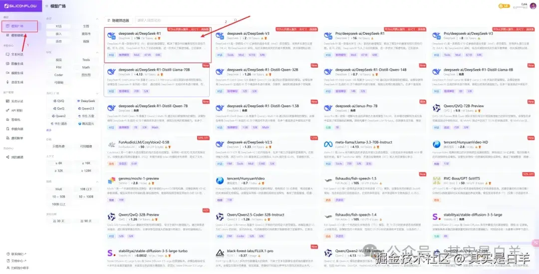 ➡️进入后台,或者直接访问:cloud.siliconflow.cn/models 找到「DeepSeek-R1」即为满血版DeepSeek-R1 671B