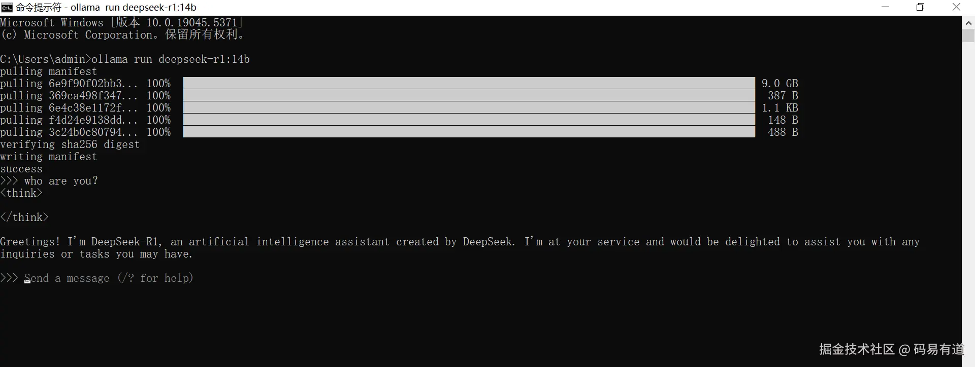 C:\Users\admin>ollama run deepseek-r1:14b