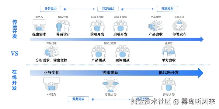 另一方面,传统开发对专业技术人员的依赖程度极高。开发一个项目需要组建包含前端开发、后端开发、数据库管理等多领域专业人才的团队,人力成本高昂。而且,由于开发门槛高,业务人员很难直接参与到开发过程中,导致开发出来的产品可能与实际业务需求存在偏差。