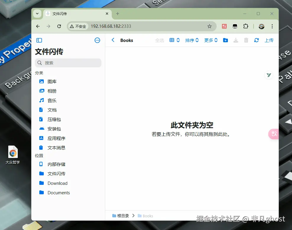 手机和电脑之间互传文件,最常见的方法通常是通过微信或QQ直接发送,或者使用数据线连接电脑和手机。然而,这两种方法都存在一些不便之处。通过微信或QQ发送文件,数据需要经过云服务器中转。如果传输的是敏感文件,这种方式可能会带来一定的安全风险。而使用数据线连接手机和电脑,虽然操作简单,但每次传输都需要频繁插拔数据线,不仅麻烦,还可能对设备接口造成磨损。文件闪传提供了一种更便捷的解决方案。它是一款专门用于手机和电脑之间传输文件的工具。用户只需在手机端安装相应的APP,并确保手机和电脑处于同一局域网环境下,然后在电脑浏览器中输入手机的IP地址加上2333端口,即可直接查看和管理手机中的文件,无需依赖微信/QQ的云中转,也无需频繁插拔数据线,大大提升了文件传输的效率和便捷性。