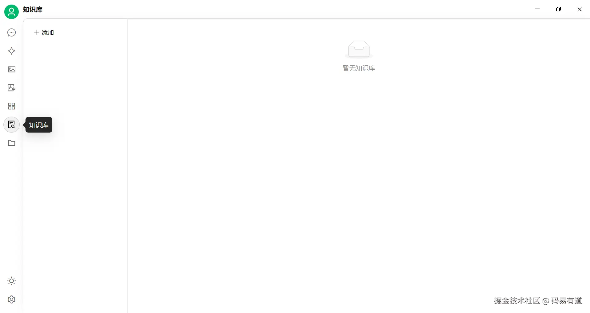 - 添加知识库:点击添加,开始创建知识库;