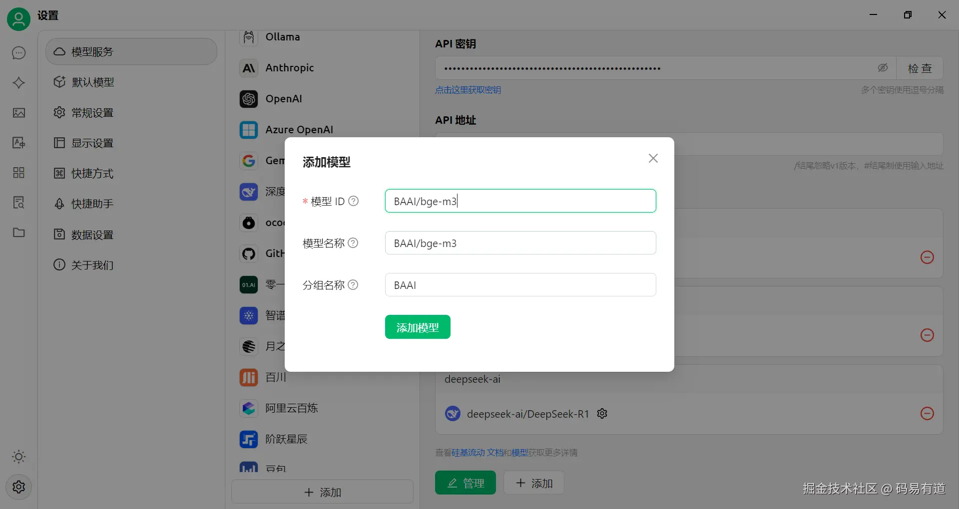 现在有了R1会话模型,我们需要添加一个嵌入模型。