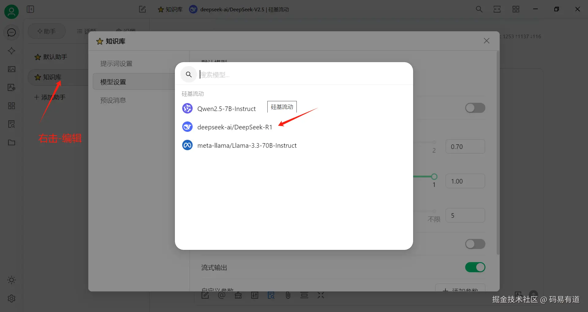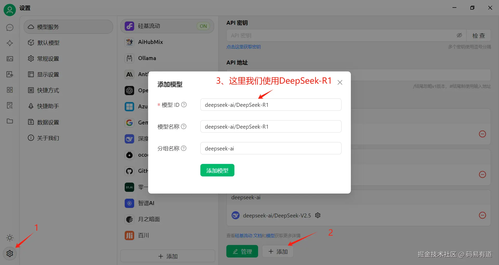 - 复制 deepseek-ai/DeepSeek-R1 添加到对应框自动识别
